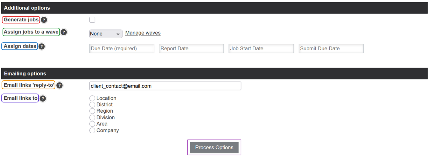 Keep in mind that these options can be set only if Generate jobs checkbox is checked. Additionally, if a Report Date is not selected, it will be the same as the Due Date.