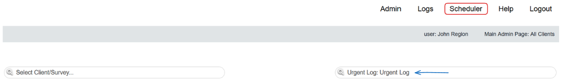 There is no need to pre-select the client and the survey, but you can do so if you wish! Simply use the Scheduler button on the top right, or use a Quickjump and look up Urgent Log.