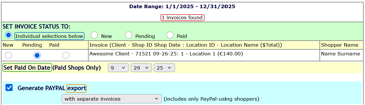 The page will let you know how many invoices were found and are editable. Using the radio buttons, you can either manage individual invoices, or invoices by their status.