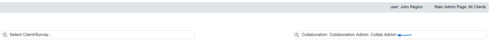 There is no need to preselect a client and a survey. Simply use the QuickJump bar and look up 'Collaboration'.