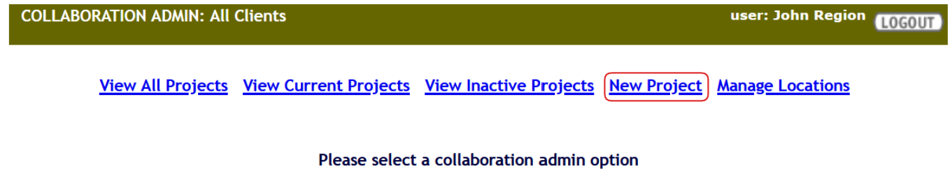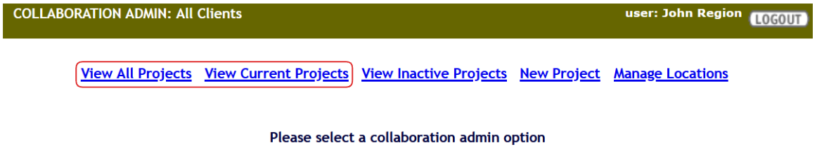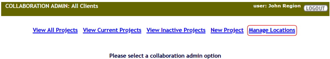 On the Collaboration Admin page, select the Manage Locations button, and select a project.