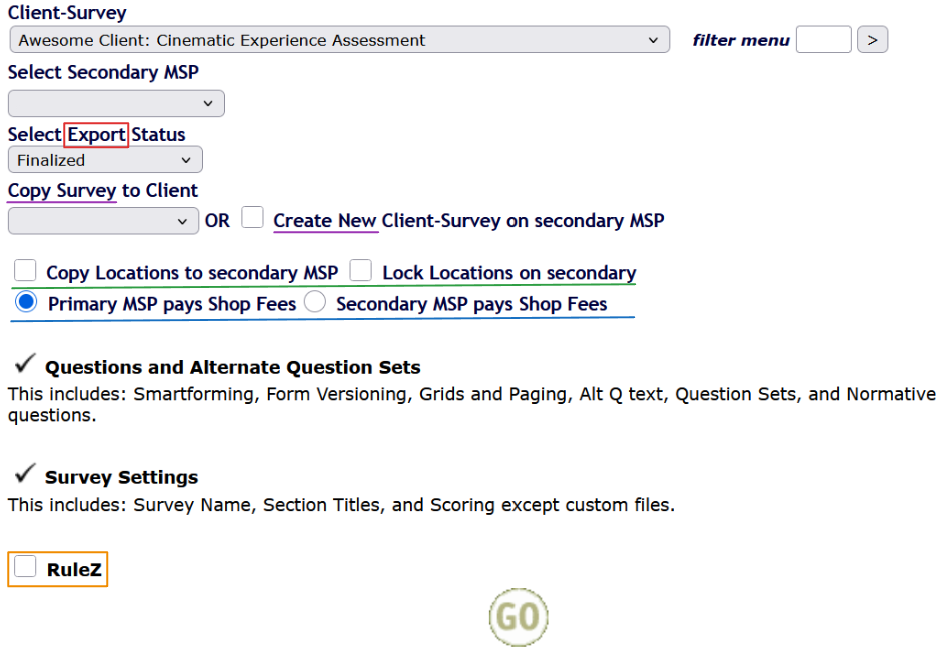 If the survey you are collaborating is using RuleZ, you will be able to check the box next to that option to send over the survey RuleZ as well.