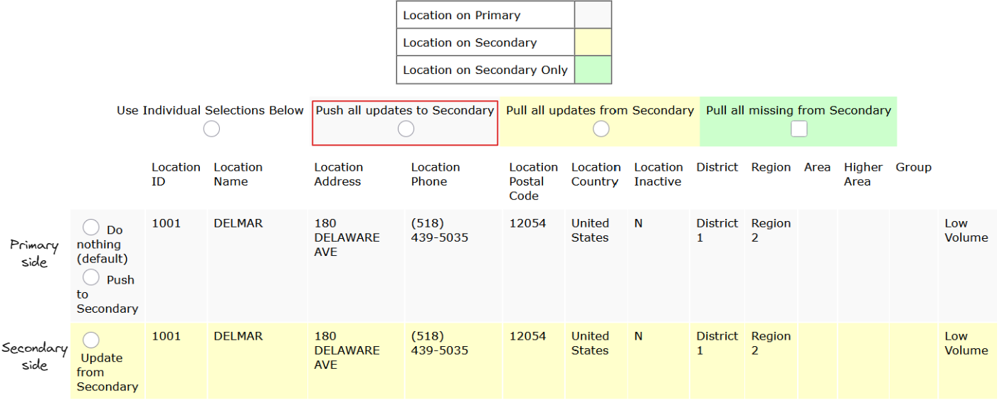 Since even spelling differences cause the locations to be listed here, the differences might be slight. However, it is important that the locations match on both Primary and Secondary side.