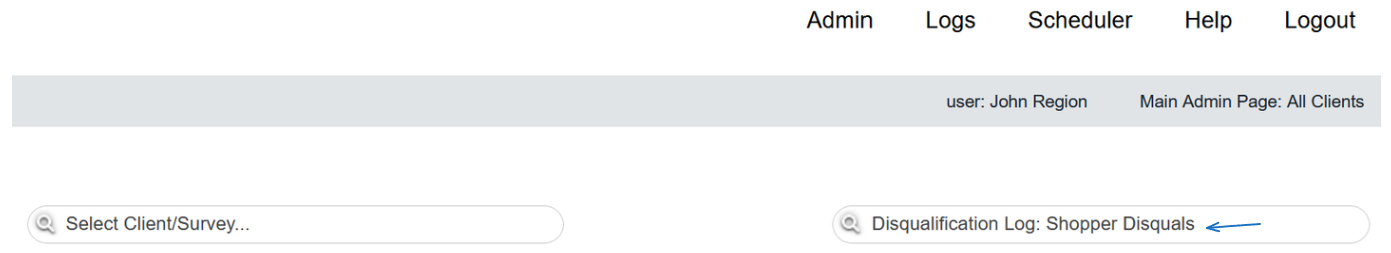 Since this is shopper related, there is no need to preselect a client and survey. Simply use the QuickJump bar and search for 'disqualification'.
