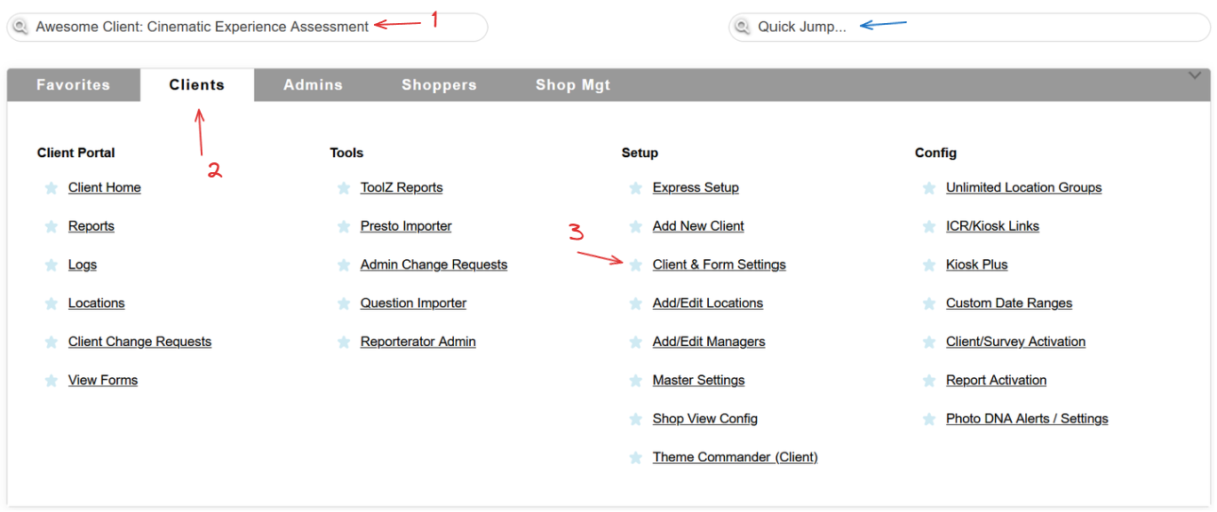 Select a client, head to the Clients tab and use the Client & Form Settings link, or simply use the QuickJump bar.