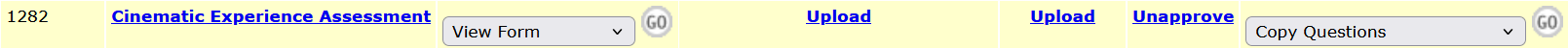 Select the Copy Questions option from the "Form Settings" dropdown on the right side of the survey section, for the survey that has the original questions you want to copy. Using the GO button will open the Copy Questions page.