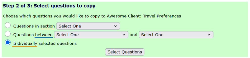 - copy individually selected questions.