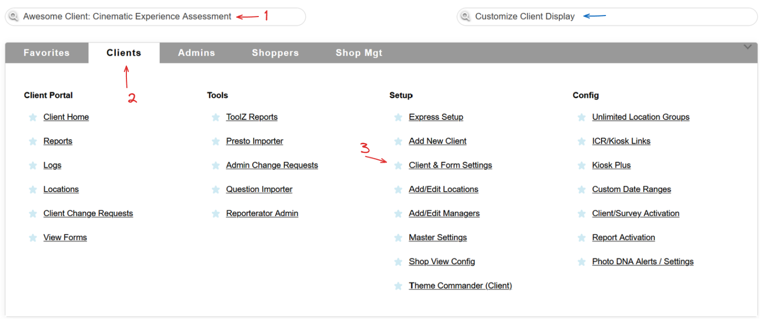 Select a client, head to the Clients tab and use the Client & Form Settings link, or simply use the Quick Jump bar.