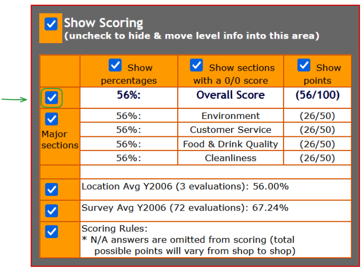 To display or hide a section, use the checkbox on the top left of it.